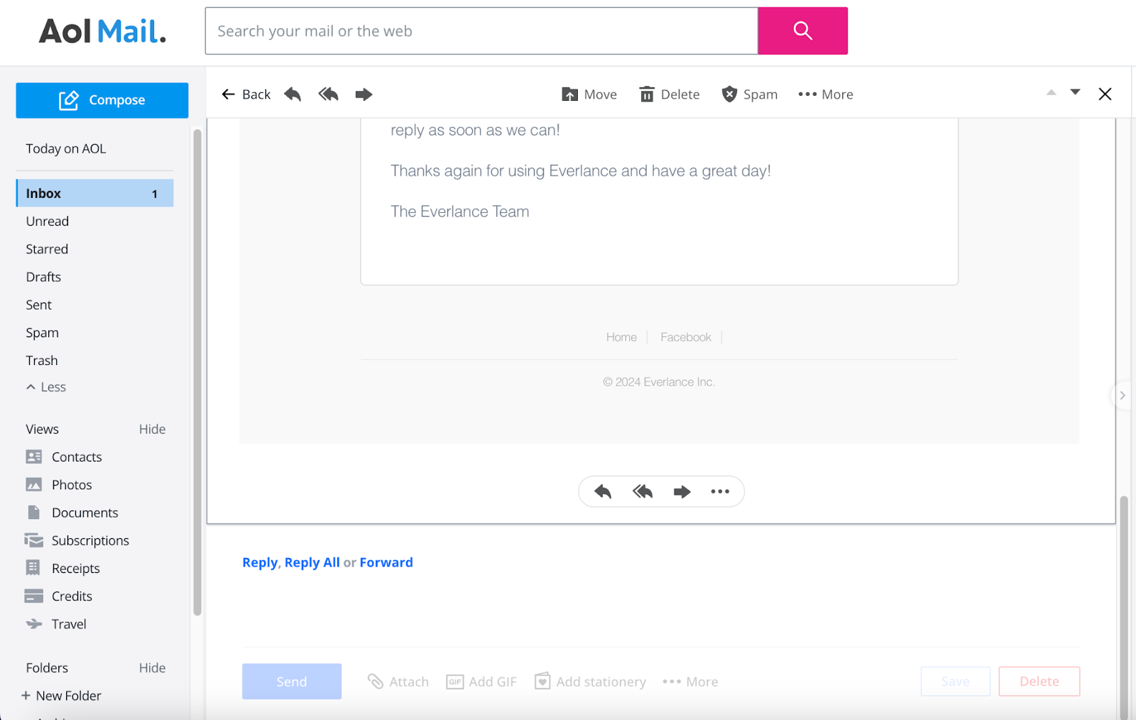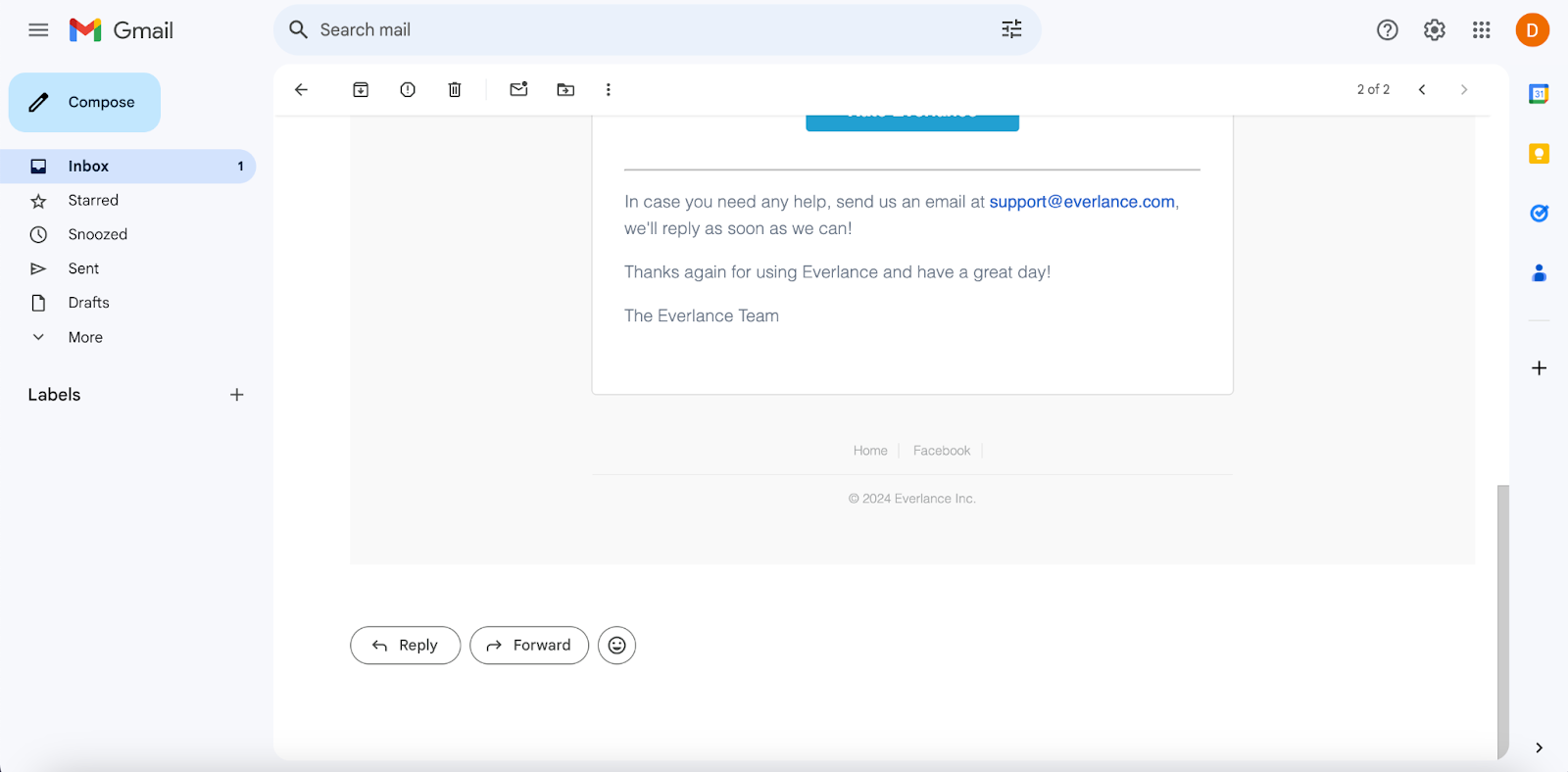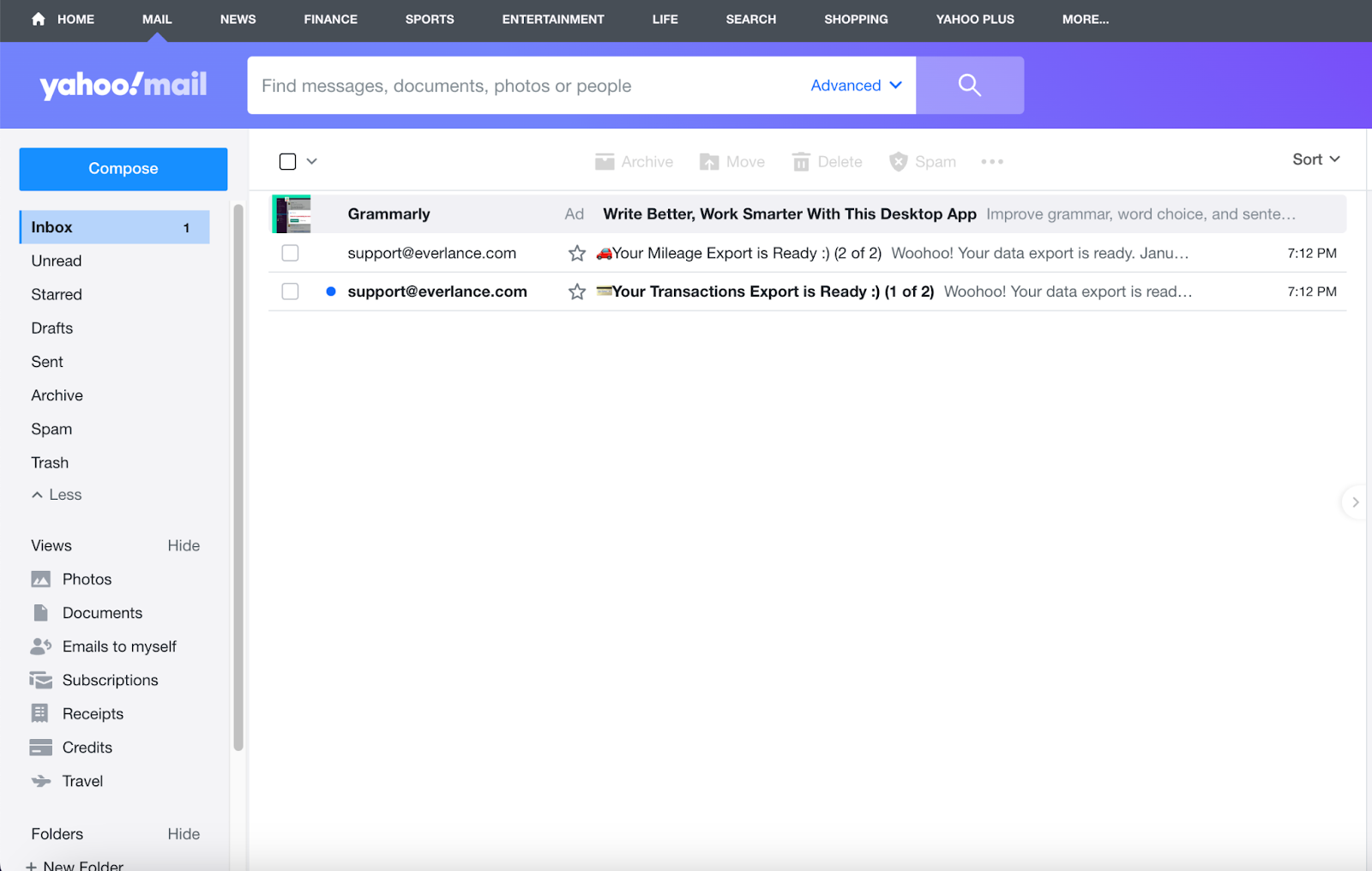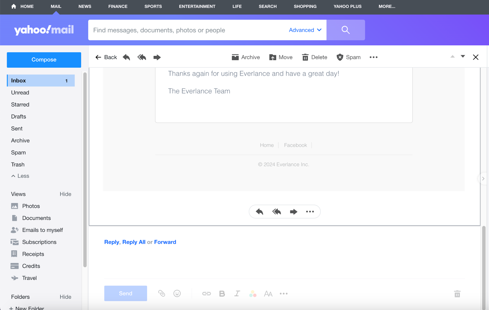 - Check your Inbox or Spam using the email associated with your Everlance account.