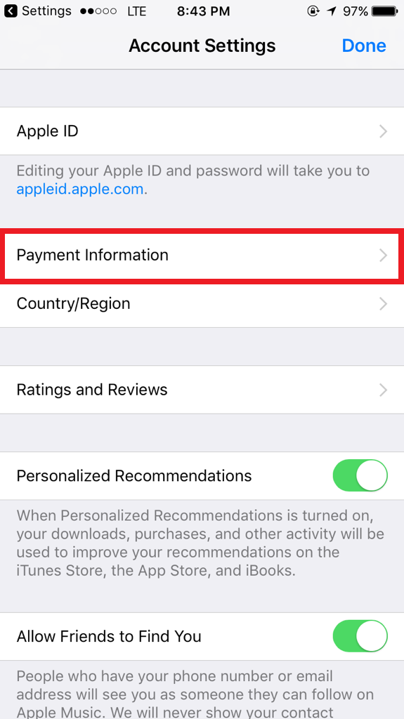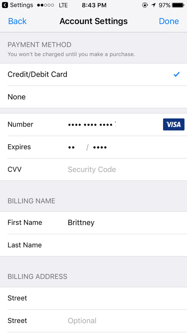 Step 4: Update your billing information, and tap 'Done' in the top right.