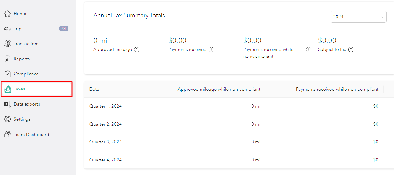 You can keep track of your taxable amounts (if any) on the "Taxes" feature in the Everlance toolbar left of your screen.