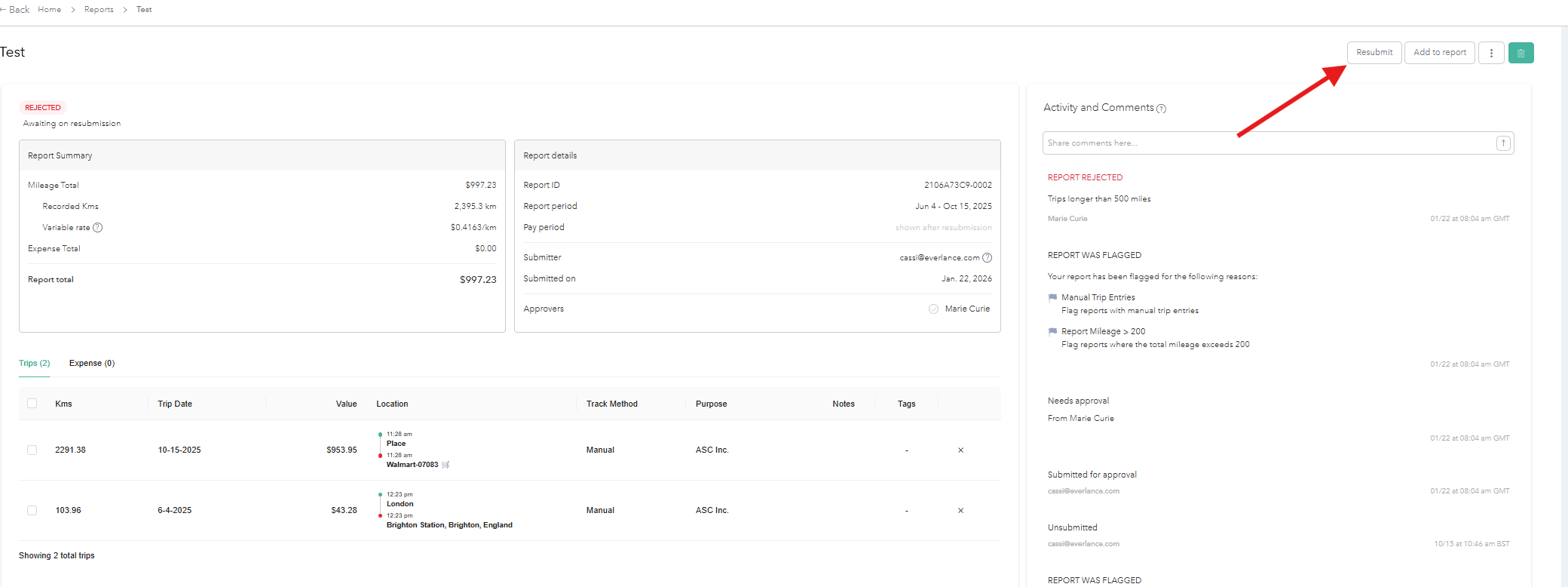 Step 3: Make sure to make the necessary changes to your report and select 'Resubmit' in the bottom right corner of your screen.